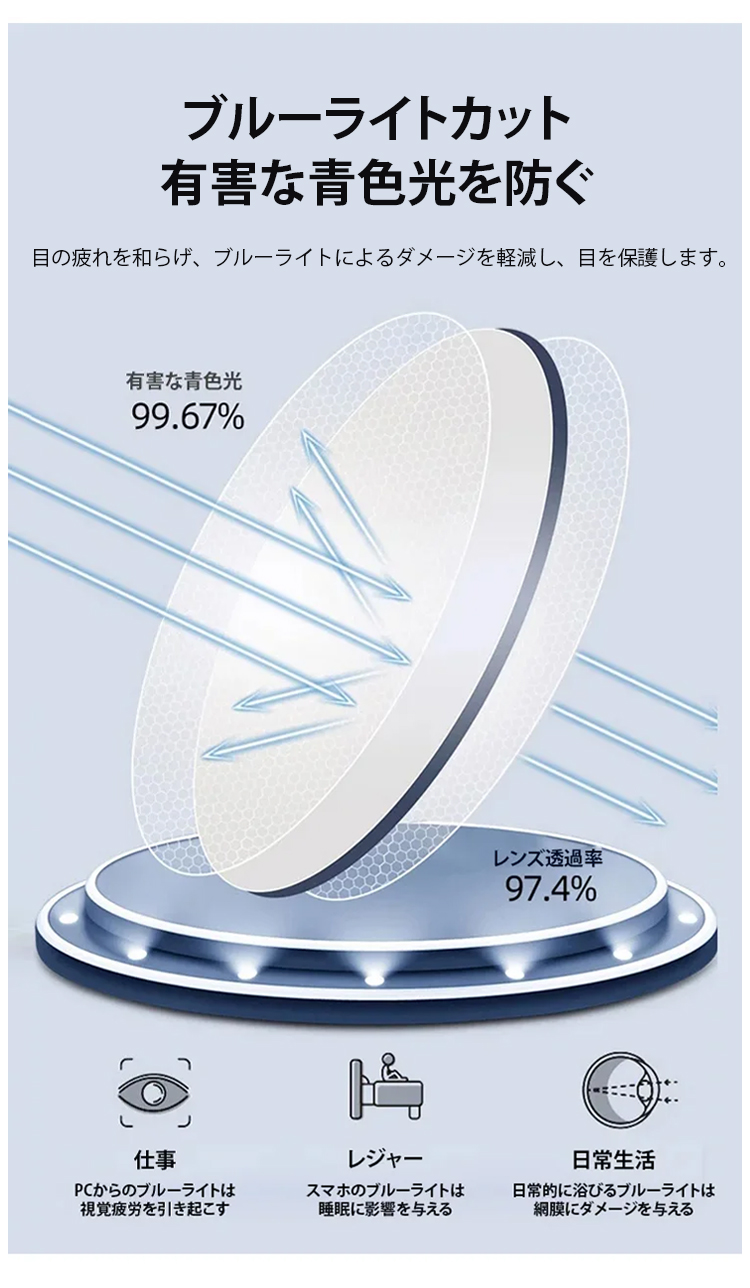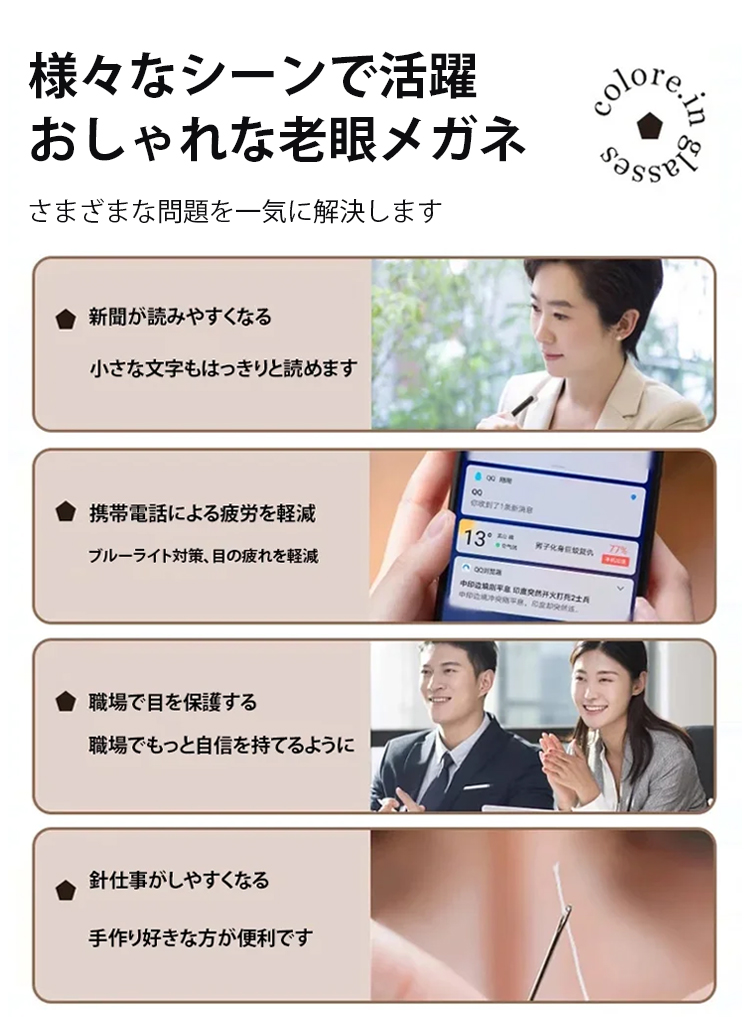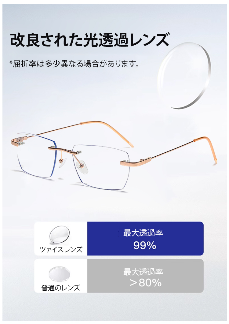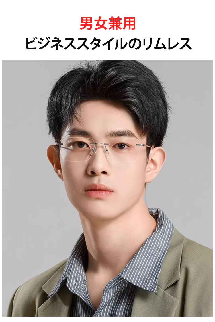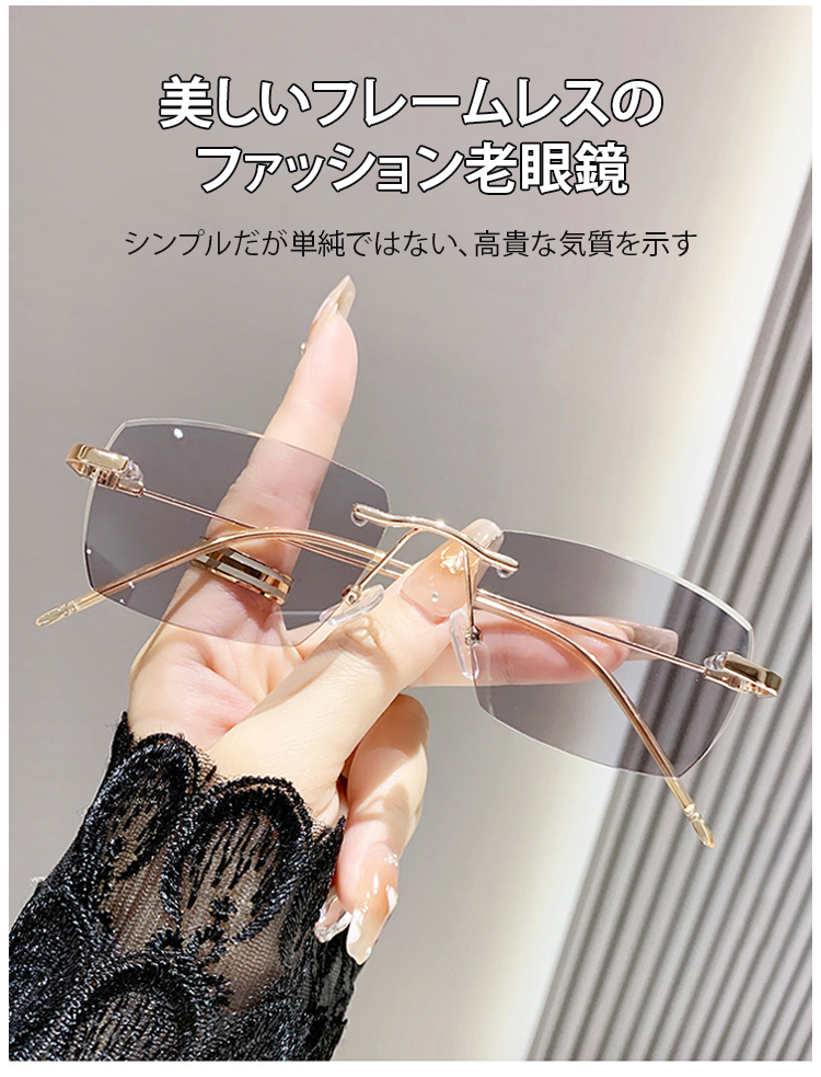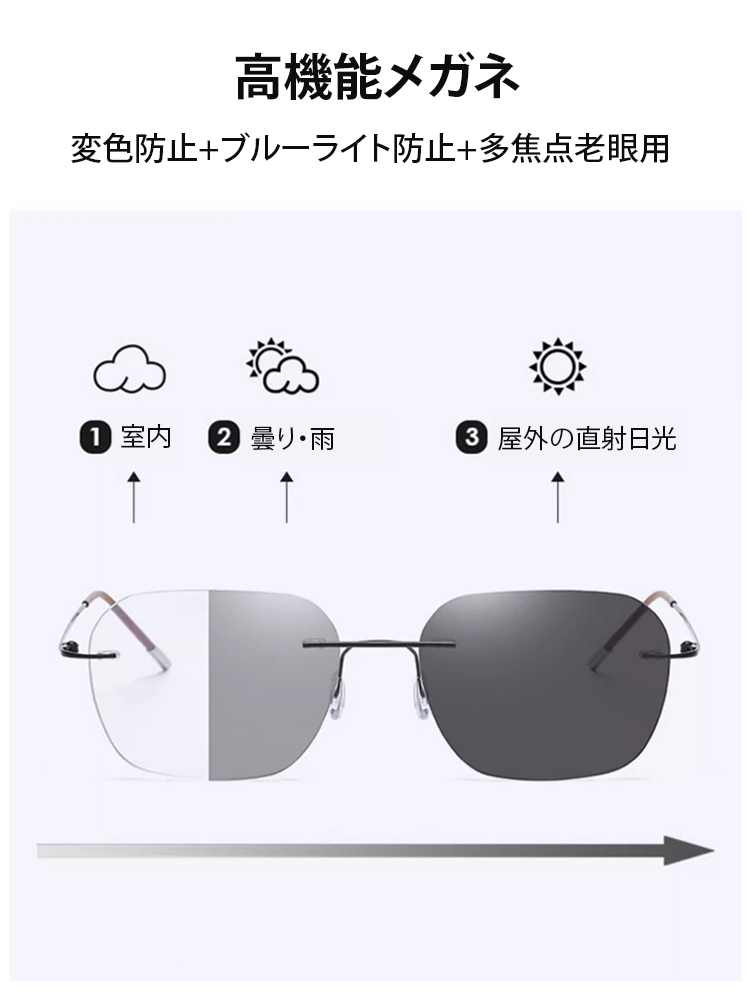 光感変色ズームリムレス老眼用メガネ【男女兼用】